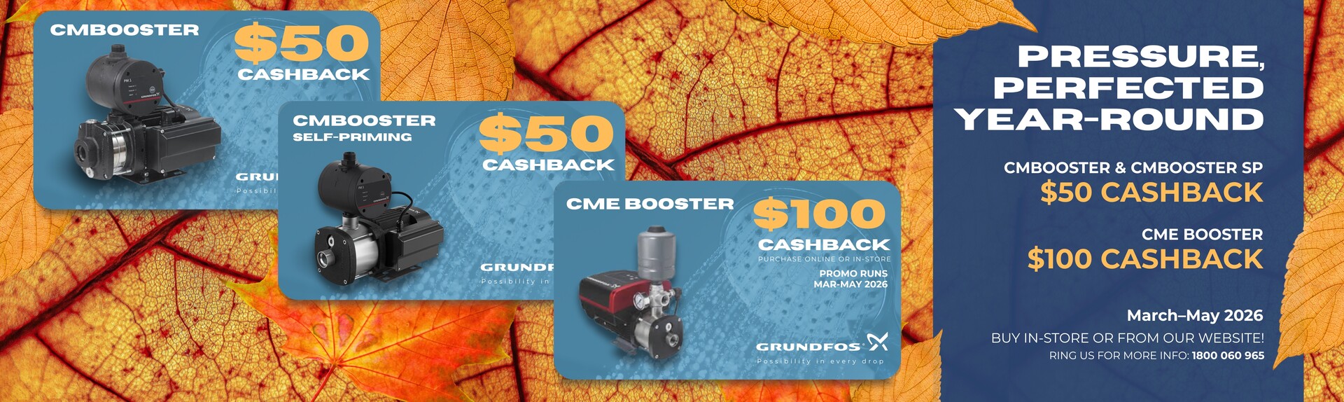 The Grundfos CMB PM is a compact booster pump suitable for water supply in domestic and light commercial applications. It is supplied with Grundfos PM1 controller which automatically starts and stops the pump based on demand.