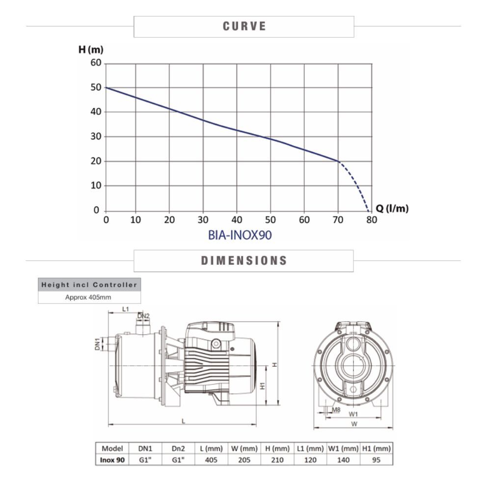 BIA-INOX90CORE - Stainless Steel Surface Mount Pump with nXt Controller