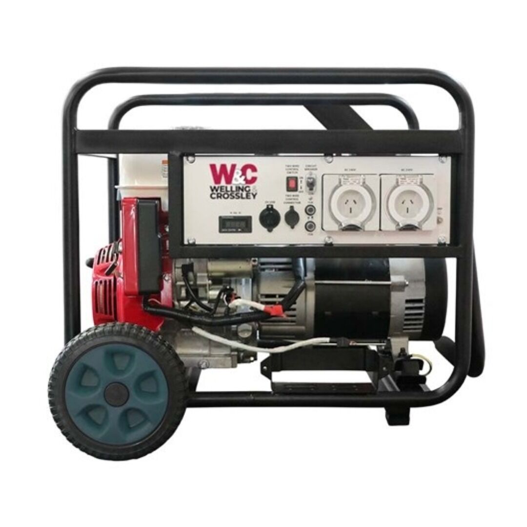 The Welling and Crossley P7750H is an AVR (automatic voltage regulated) generator with key-start, powered by a Honda Australia approved GX390 engine.