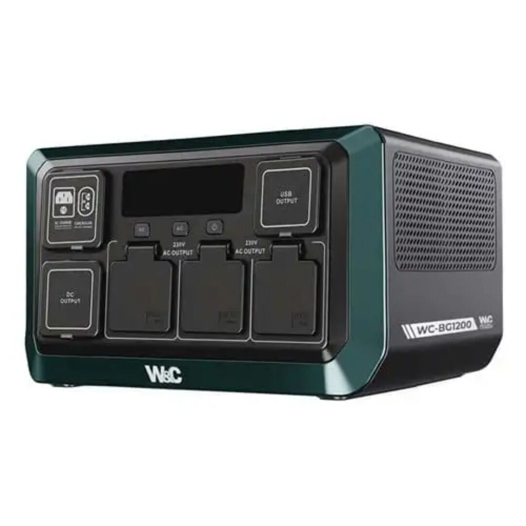 The WC-BG1200 is a lightweight, easy-to-carry power station with a 1200W rated output (2400W surge) and 1152Wh capacity.