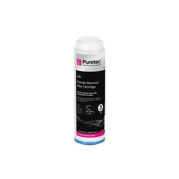 Fluoride removal cartridge. Up to 90% fluoride removal. 5 micron, 2.5" x 10" cartridge