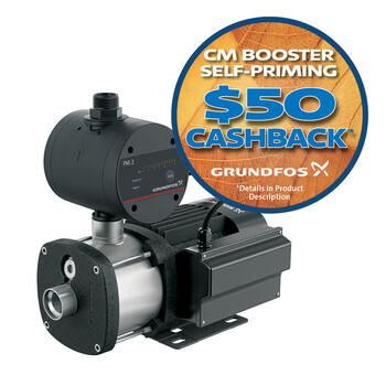 CMB-SP is a compact, self-priming booster pump supplied with a Grundfos PM1 controller for water supply in domestic and light commercial applications. It can create a suction lift of up to 8m